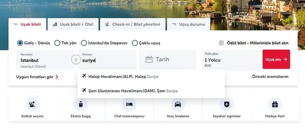 THY'nin internet sitesi ve mobil uygulamalarında uçuş planlama kısmında Şam ve Halep Havalimanlarının uçuş rotasında yer almaya başladığı görüldü.
